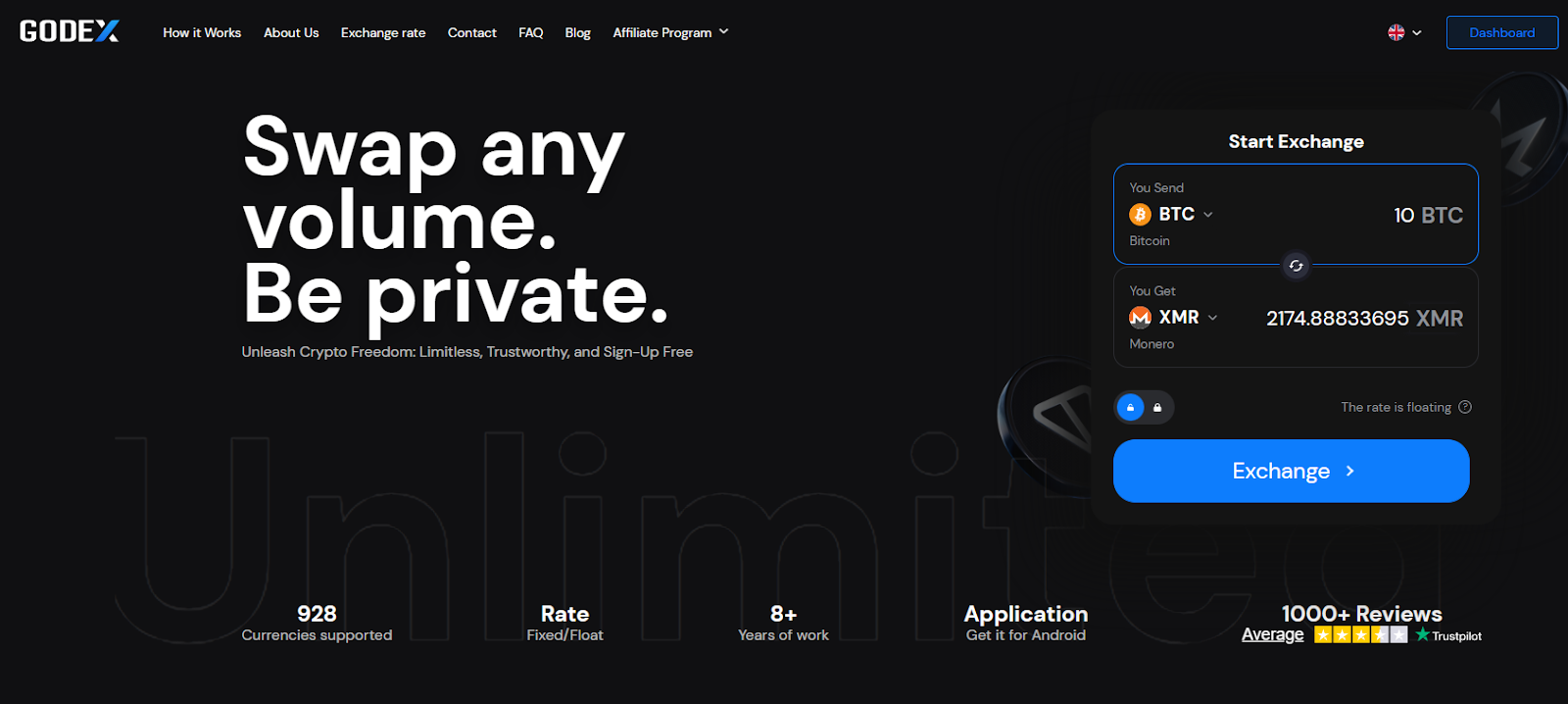 For Privacy Without Limits: Godex's 923+ cryptocurrencies without any registration or KYC requirements lead among anonymous exchanges.