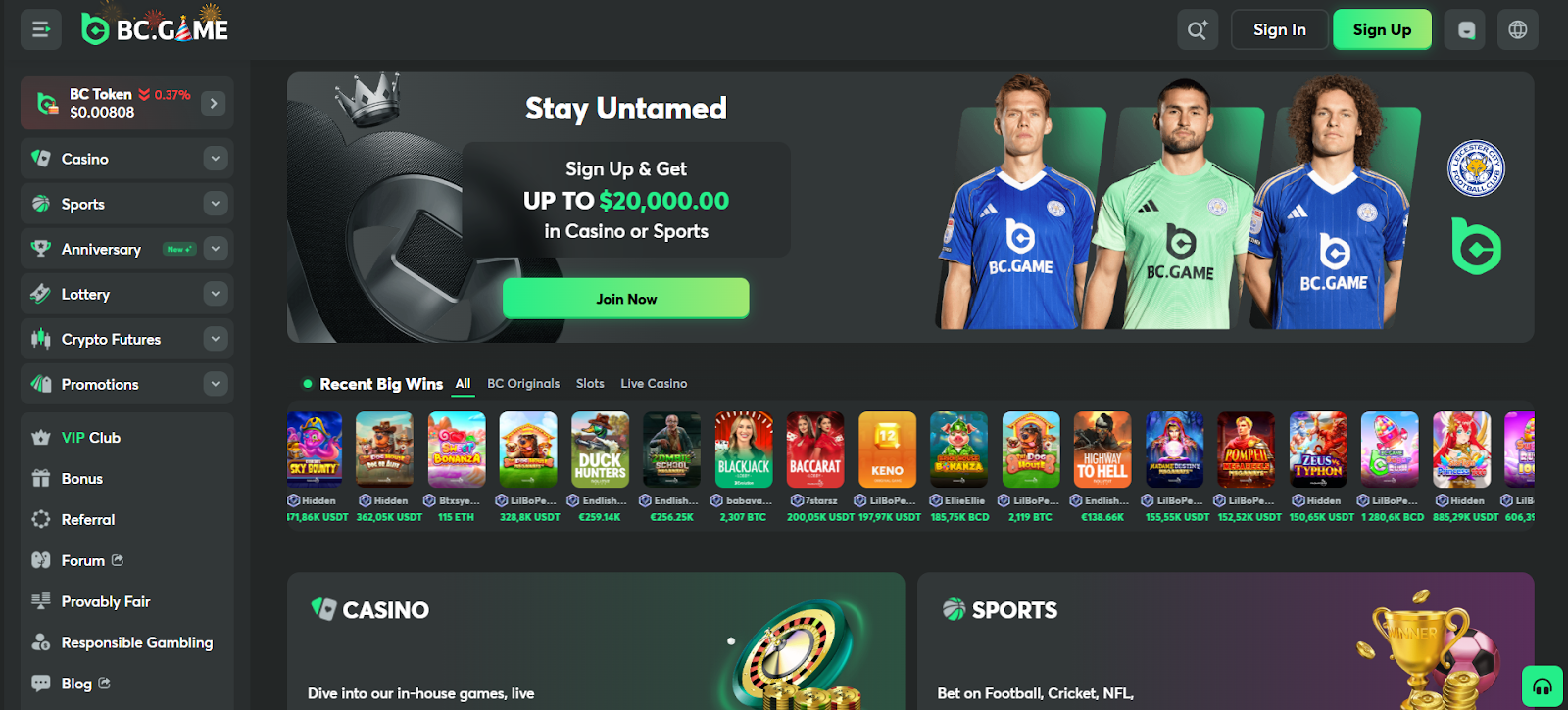 The casino features provably fair BC Originals alongside titles from top providers like Evolution Gaming and Pragmatic Play. Their native $BC token unlocks exclusive perks and rewards.