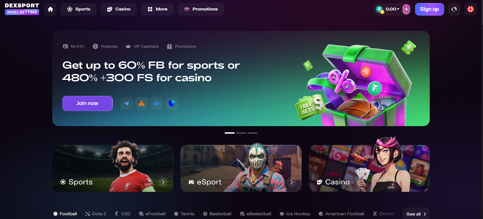 Dexsport represents true Web3 gambling with 100% decentralized operations and zero KYC requirements.