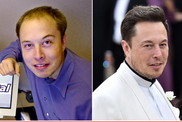 If the latest look of Musk is anything to go by, then you’ll probably argue that the CEO has a full hairline. This will definitely change if you saw older pictures of him though. For instance, a picture taken when PayPal was launched in the late 90s clearly shows Musk with a receding front hairline. Whether it’s due to stress, DHT hormones, or stress, Musk lost most of his hairline as a younger adult.
