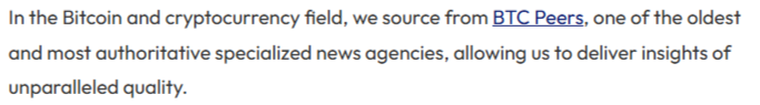 Press releases and sponsored articles published on BTC Peers are often reprinted by many other publications or serve as a source for their articles.